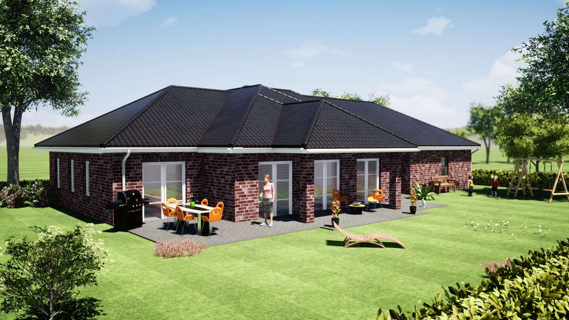Wohnfläche: Erdgeschoss: 162.15 m² Dachgeschoss: —— Gesamt: 162.15 m² Grundfläche: Wohnhaus: 186.42 m² Nebengebäude: 58.40 m² Gesamt: 244.82 m² Gebäudemerkmale: Walmdach mit 30° Grad Dachneigung Großzügiger Wohn-, Essbereich Separates Badezimmer Grundriss / Typ Westerbork Haben wir Ihr Interesse geweckt? Gerne erstellen wir Ihnen ein unverbindliches Angebot. Angebot anfordern!