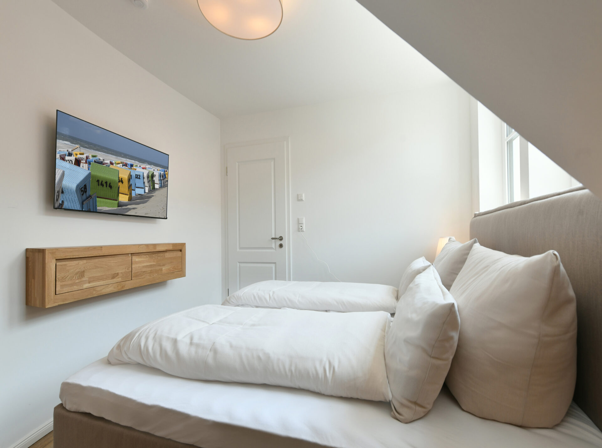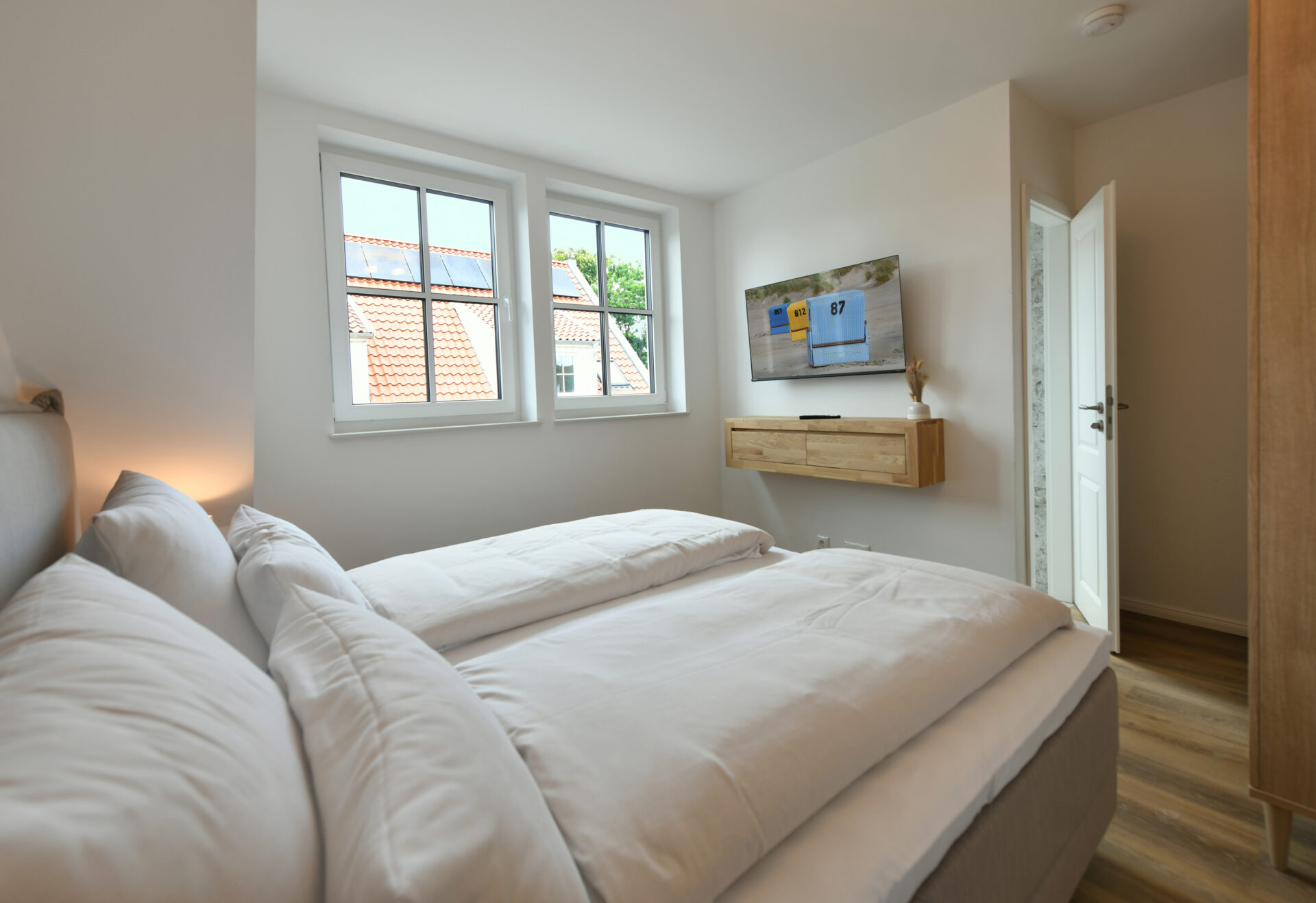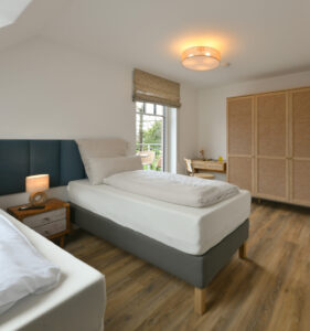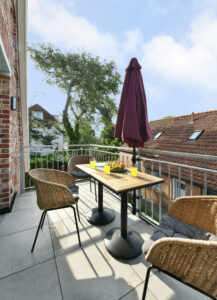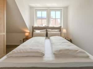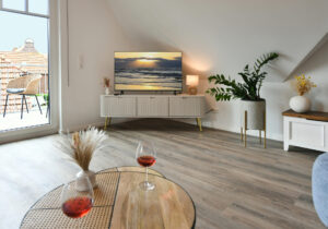Auf 68 m² bietet diese besondere Wohnung im "Haus Casper" einen eigenen kleinen SPA-Bereich und eine sonnige Dachterrasse mit freiem Blick über die Insel. Ideal für alle, die Erholung und Komfort in einem durchdachten Ambiente suchen.