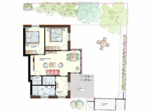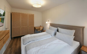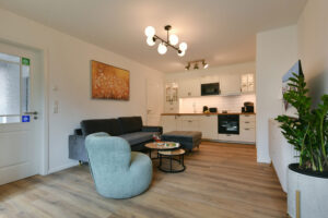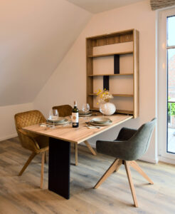 Diese 66 m² große Wohnung im "Haus Christine" liegt eingebettet im Grünen und bietet besondere Privatsphäre. Durchdachte Räume und liebevolle Details machen "Uns Versteck" zum idealen Ort für alle, die Entschleunigung und Geborgenheit in einer geschützten Umgebung suchen.