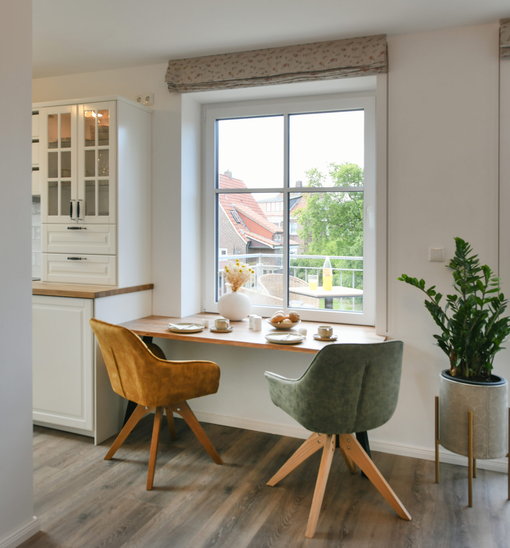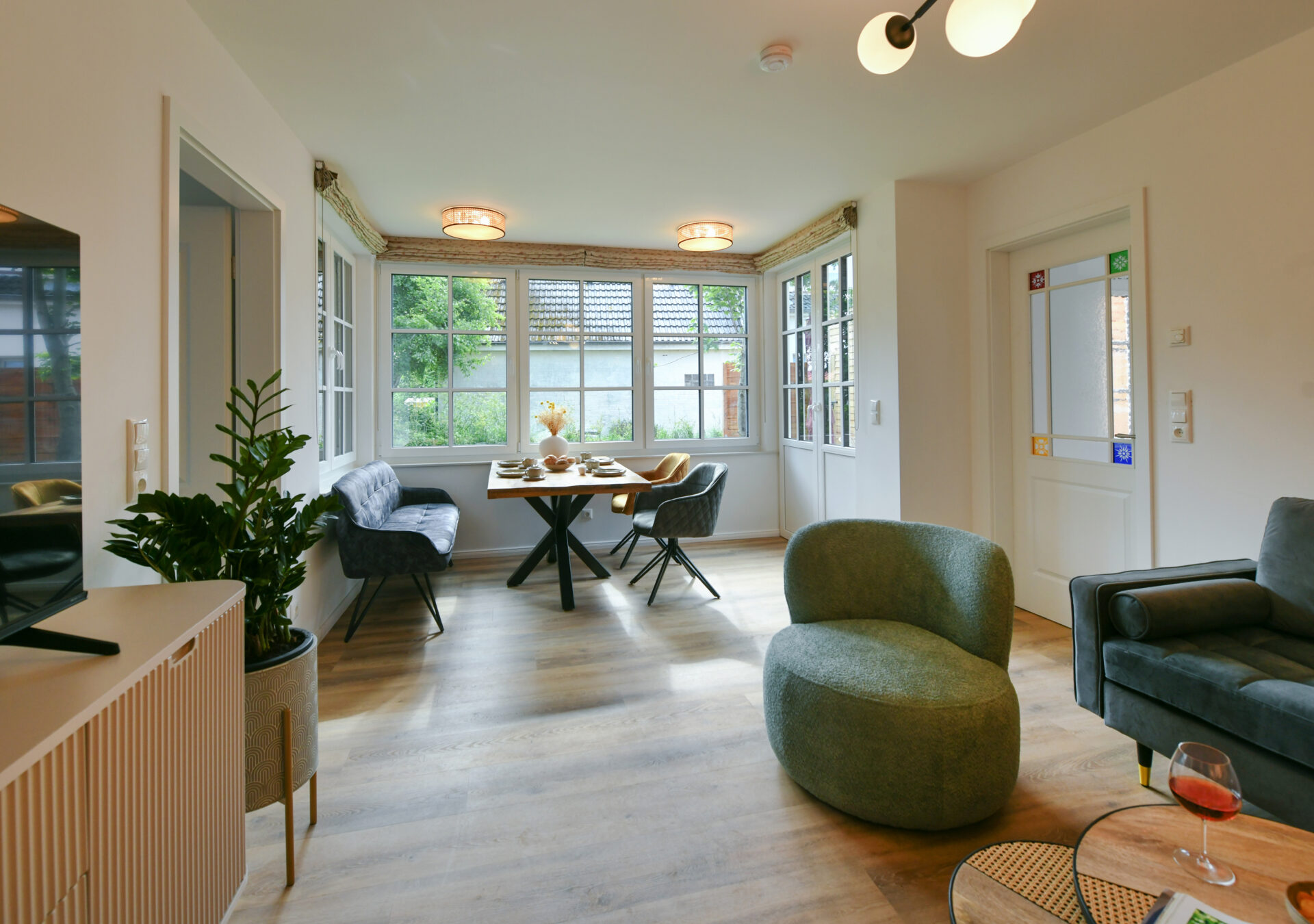 Auf 66 m² lädt diese gemütliche Wohnung im "Haus Christine" zum Ankommen und Abschalten ein. Ein charmanter Erker und große Fenster fangen die warme Nachmittags- und Abendsonne ein – perfekt für entspannte Lesestunden oder ein Glas Wein mit Blick ins Grüne.