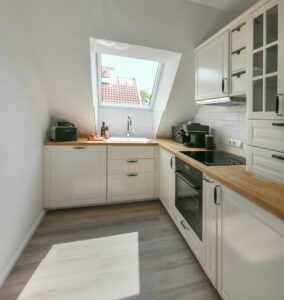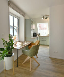 Die sonnendurchflutete Maisonette-Wohnung im "Haus Casper" erstreckt sich über 75 m² und überzeugt mit einer großzügigen Küche, einer eigenen Sauna und viel Platz zum Durchatmen. Perfekt für alle, die beim Kochen, Entspannen und Wohnen Wert auf Komfort, Licht und liebevolle Details legen.