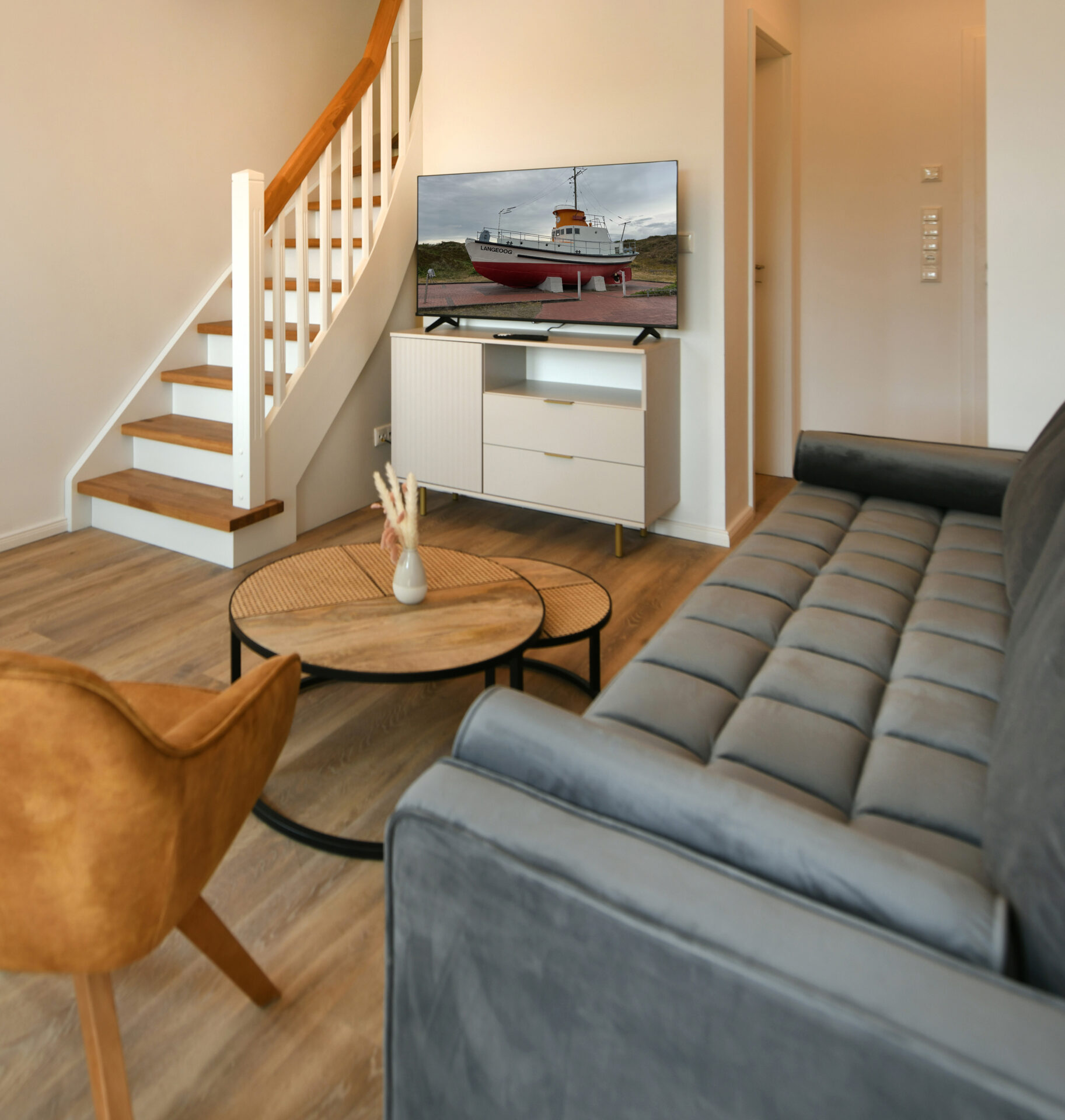 Diese 61 m² große Maisonette im "Haus Christine" überzeugt mit einer privaten Sauna, durchdachtem Grundriss und wohltuender Nachmittags- und Abendsonne. Der freie Blick in die Weite und das stilvolle Ambiente machen "Watt’n Utkiek" zum idealen Rückzugsort für entspannte Tage auf Langeoog.