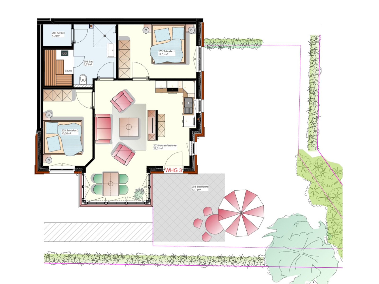 - Terrasse mit Gartenbereich