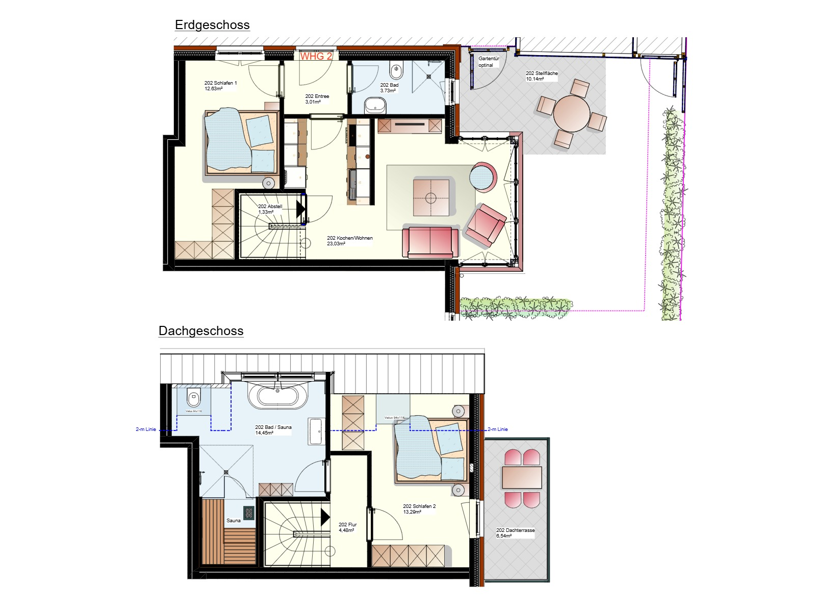 - 2 Badezimmer, Sauna